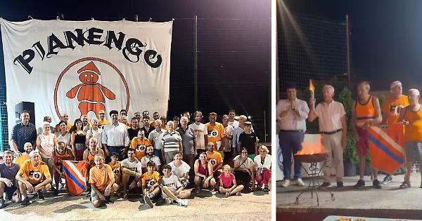 PIANENGO - Con l'arrivo dell'ultimo tedoforo, il presidente onorario Tonino Riboli, tra i fondatori nel 1975 della Us Pianeghese, si è conclusa ieri sera la fiaccolata di 50 ore promossa dalla stessa società, proprio per celebrare il mezzo secolo di vita. Un ingresso accompagnato dagli applausi nell'area della festa dello sport, con Riboli, primo presidente degli orange, accompagnato dagli altri ex presidenti e dall'attuale Cristian Saronni.