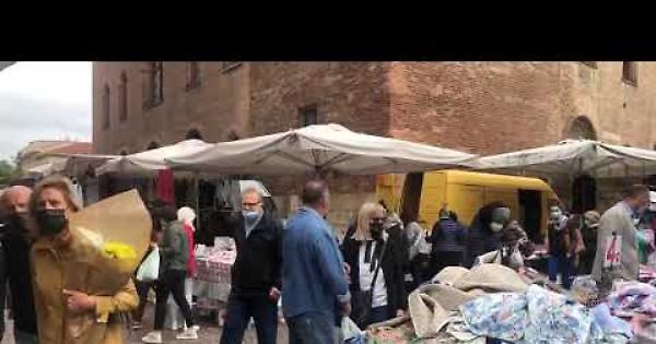 CREMONA (1 maggio 2021) - Tante persone in centro città questa mattina in occasione della Festa del Lavoro. Shopping nei negozi tutti aperti e tappa d'obblico al tradizionale mercato del sabato.