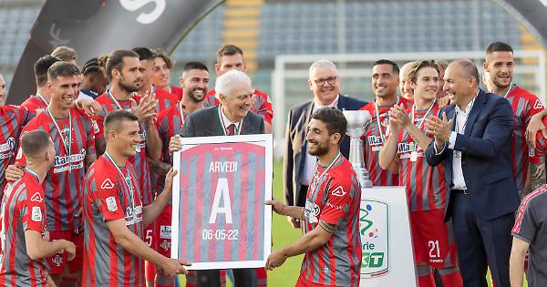 La curva Sud straborda di tifosi con bandiere e striscioni: tantissima gente anche nel settore dei Distinti. Tifosi al settimo cielo per un traguardo fantastico, raggiunto dopo una cavalcata incredibile e conquistato all'ultima giornata. Festa grande e gioia incontenibile anche per i giocatori in campo. i protagonisti della cavalcata della promozione sono emozionati e saltano con la curva. E alla festa ha partecipato anche l'artefice del miracolo grigiorosso: il patron Giovanni Arvedi. Applauditissimo dallo Zini pazzo di gioia.
