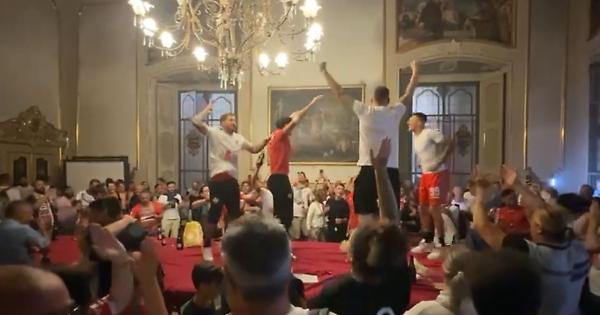 I giocatori accolti con un lungo applauso. Momento solenne sul balcone, con la squadra che ha salutato i tifosi. Le immagini raccontano tutta la gioia di una città intera.
