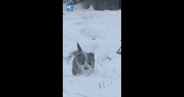 Cina, cucciolo di cane da pastore sfida la neve per radunare le pecore